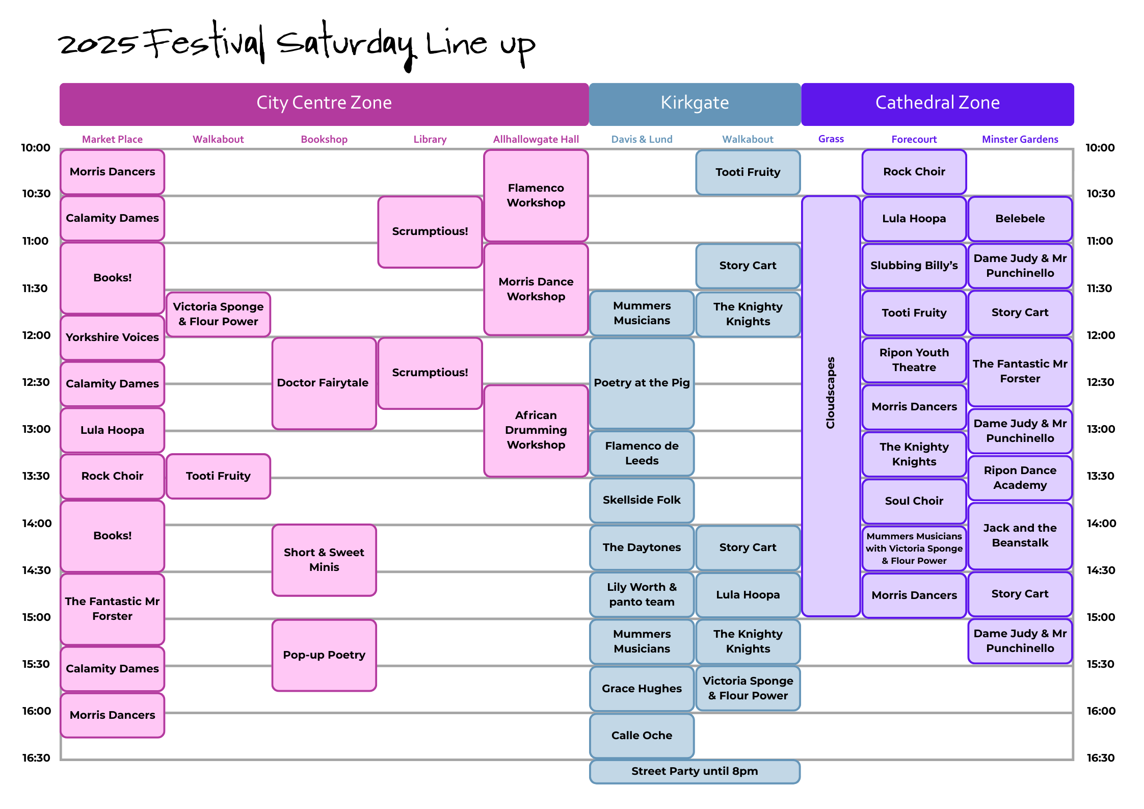The festival welcomes professional performers onto our city streets and venues, but it’s the people of Ripon who will really make the festival fly!