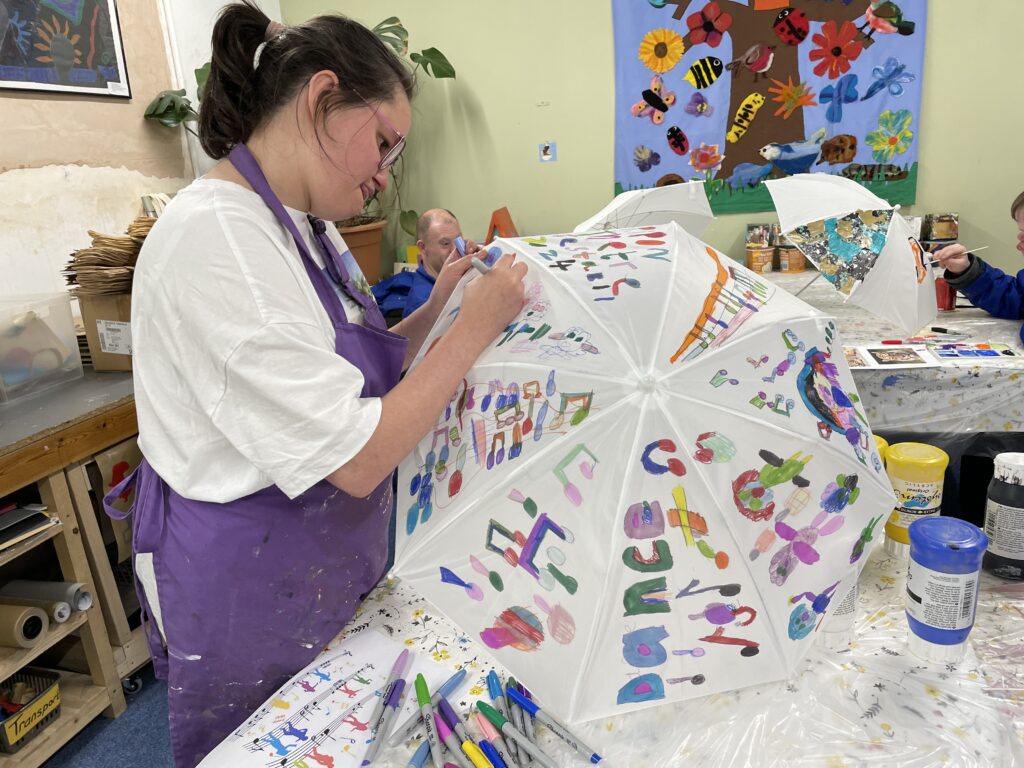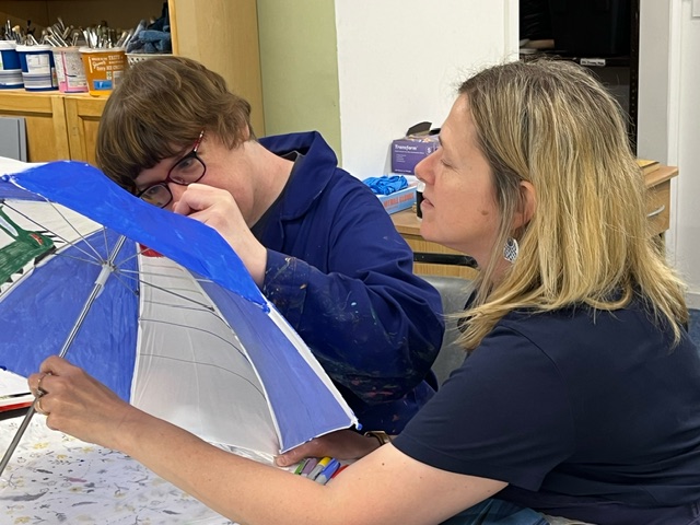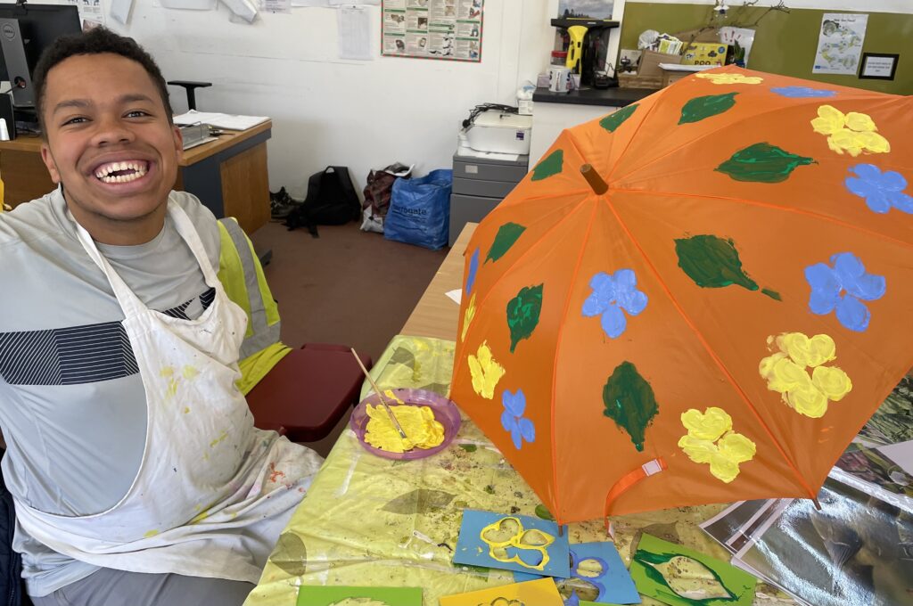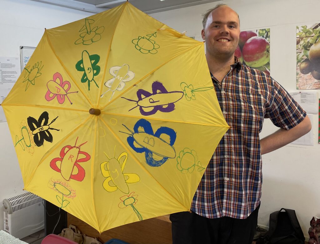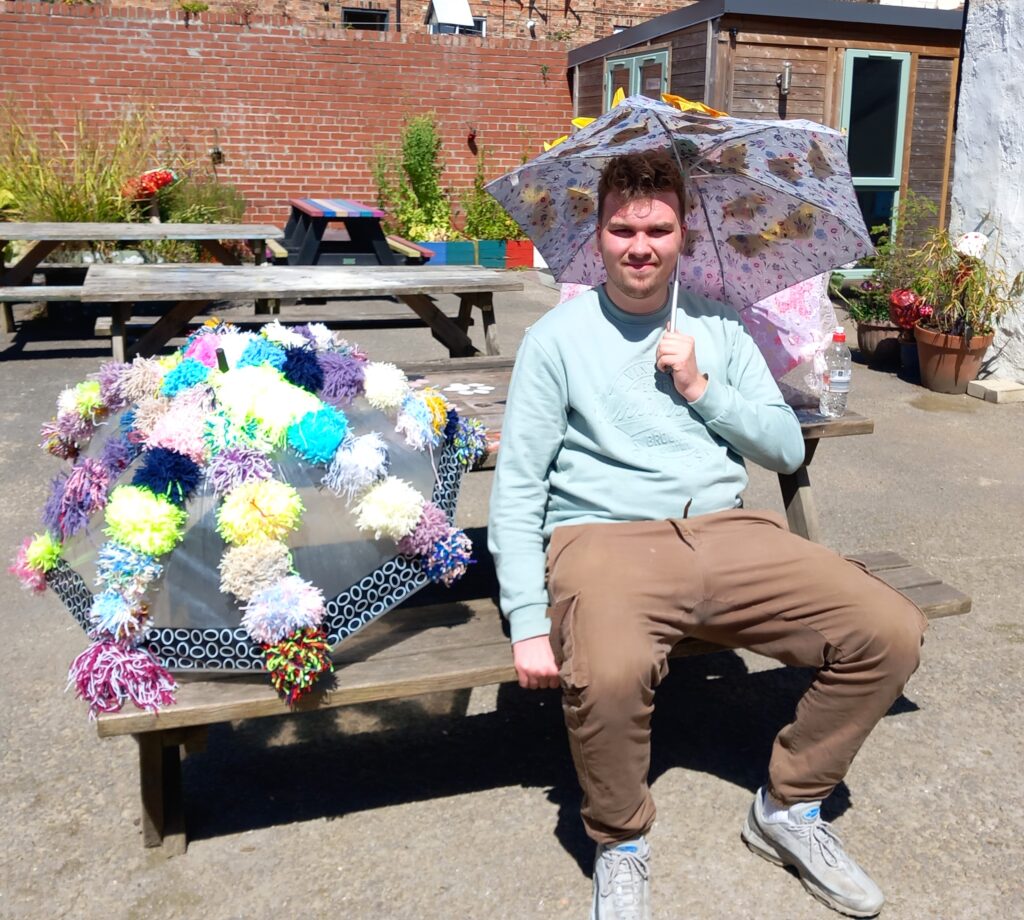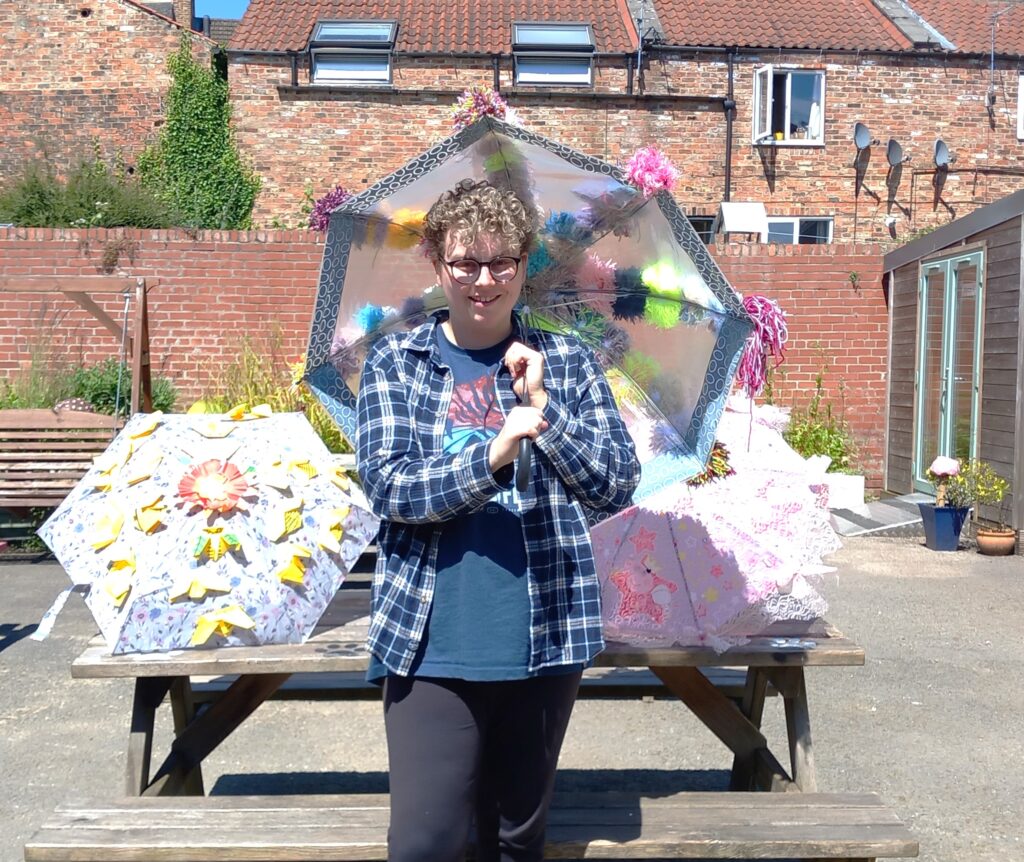 Across 3 locations, participants have been busy upcycling umbrellas and putting their own ideas, inspirations and passions into their unique designs. Community Artist Sharon Hockin has run sessions at Jennyruth Workshops, Ripon Walled Garden and with Evolve College to help the makers get the most out of their designs. And we think the results are tremendous.