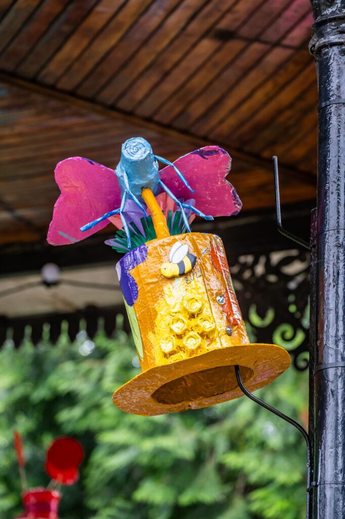 After months of creativity, imagination and lots of wallpaper paste, our hat makers were finally able to see their gorgeous creations on display in Ripon Spa Gardens during Festival week.